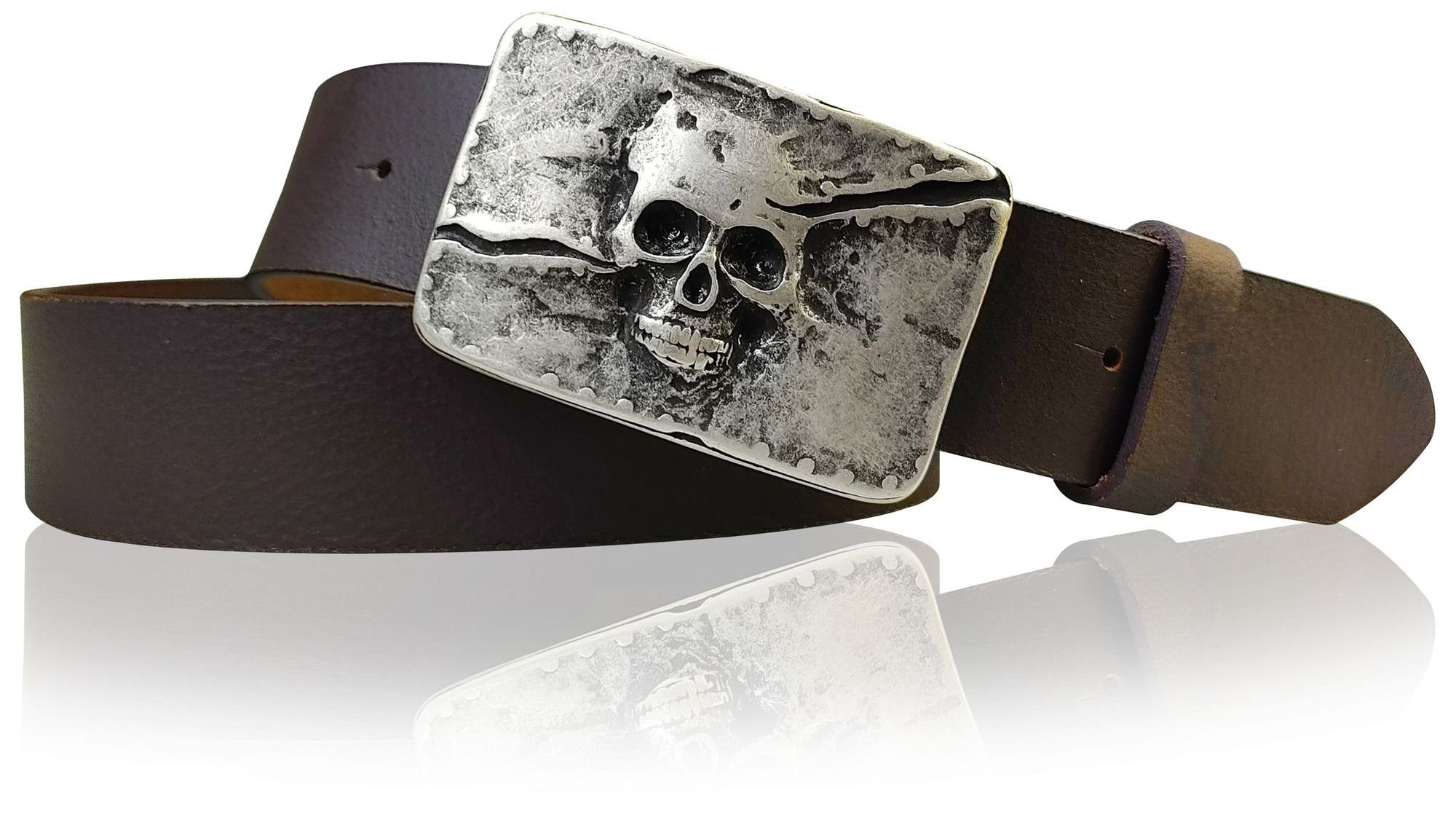 FRONHOFER Koppelgürtel »17614« Ledergürtel 4 cm, Totenkopf Gürtelschnalle mattsilber, echtes Leder